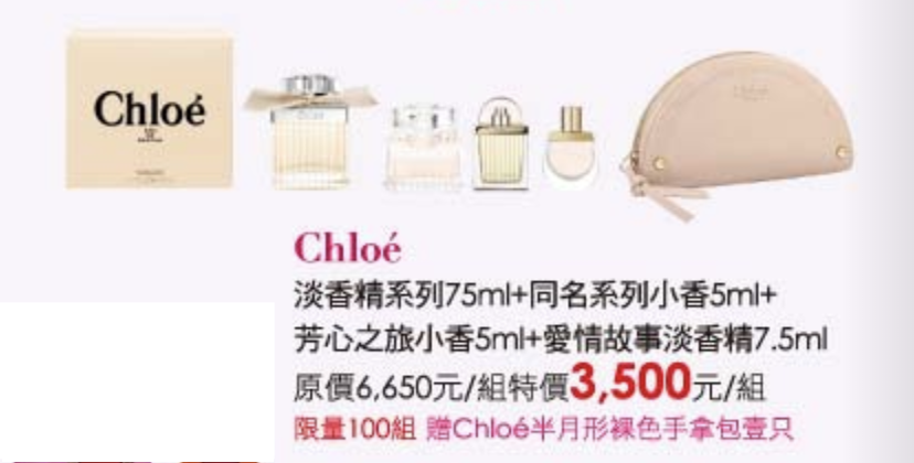 Chloe 香水組 原價6650 特價3500 約53折